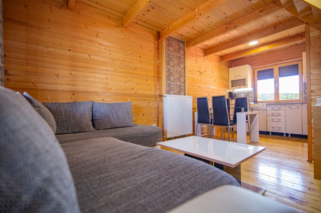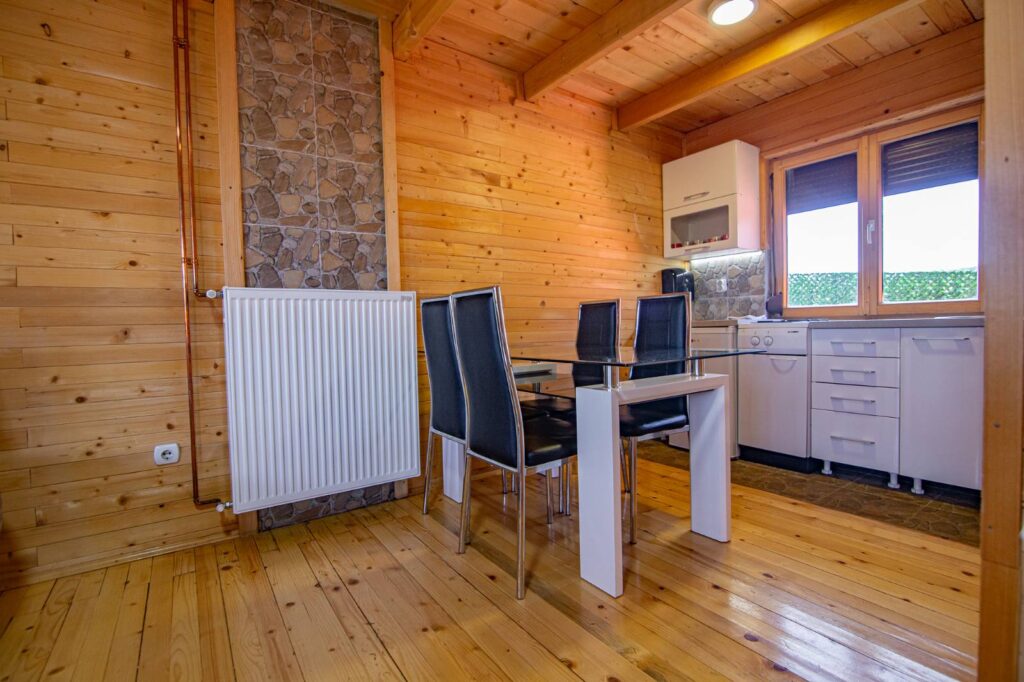Svaka brvnara ima zatvorenu terasu koja je pogodna za uživanje i tokom zimskih dana. U prizemlju se nalazi dnevna soba, kuhinja i veliko kupatilo sa kadom. Na spratu su smeštene dve udobne sobe: jedna sa bračnim krevetom i TV-om, a druga sa dva singl kreveta. Soba sa bračnim krevetom opremljena je smart TV-om s pristupom internetu, kako biste mogli uživati u omiljenim sadržajima tokom boravka. Naša voda je izvorska i odličnog kvaliteta, što dodatno doprinosi vašem komforu.